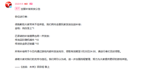 逆战未来补偿纯白至上 最新追加补偿公告