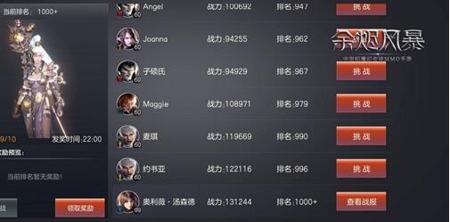 在战神试炼场上我们可以查看到每位对手的基本信息,包括职业、战力、排名等信息,当我们首次进入到战神试炼场会获得一定末端的排名,然后可以通过挑战对手取代对方排名,从而让自己的排名获得稳定的提升。