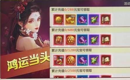 当玩家累计充值288元宝、680元宝、1280元宝、2500元宝等时,都是可以领取到丰厚奖励,奖励包括元宝、宠物经验丹、节日经验丹、经验药水、首领挑战券等等!