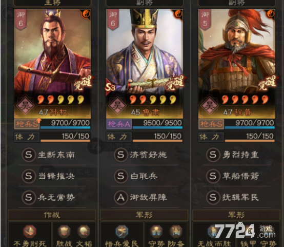 这套阵容就是吴枪的最高配置,孙权很怕被缴械,所以很需要有草船来解控,如果想要让孙权稳定清负面,那么最好选择援护甲,这样子才能用刮骨来解控。