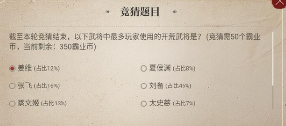 答案是姜维或者蔡文姬,因为姜维开荒是公认的稳定,很多想要高效开荒都会选择这个武将,而蔡文姬是因为3御奶,所以使用的武将也相对比较多一些。
