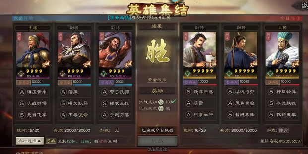 这套阵容输出伤害足够,并且张任有两控制,而沙摩柯也有控制。这样子就可以轻松克制对面,蜀智输出全部都是主动战法,而被技穷就无法使用技能,因此选择这套阵容可以一次性就通过。这次的难度实在是太低了,玩家只要用这套阵容就能轻松拿下第二天的奖励。