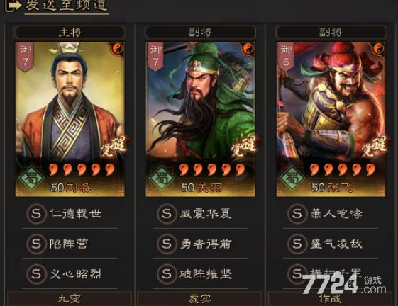 阵容走的就是削弱和恢复路线,有着超高的刘备减伤,可以进行恢复,也可以有概率虚弱一名武将。在这里的关羽提升大量的控制和群体输出,张飞就是全输出,超高的爆发,还有震慑的效果,就是低战损,高输出的阵容,s1~s6都很强势的阵容。