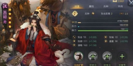 王昭君最近也是可以通过春节的红颜卡包进行抽取获得的,所以最近想要了解王昭君的小伙伴还是比较都的。这个武将在游戏里是只能当做辅助武将进行使用的,因为属性是比价差的,但是想要使用的话还是要根据她的战法来选择合适的技能和武将进行搭配的。