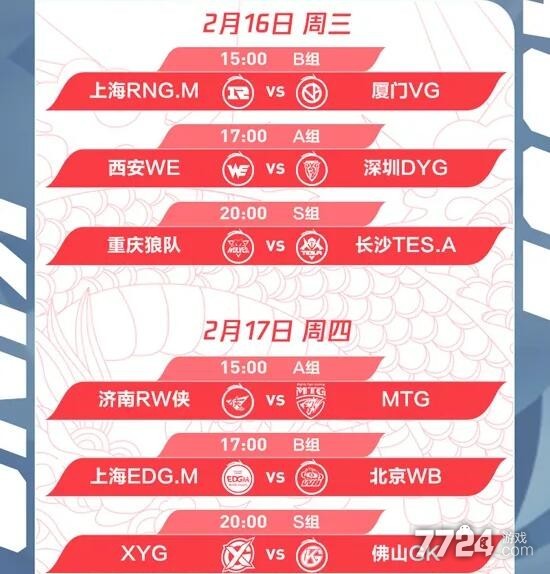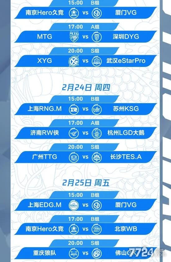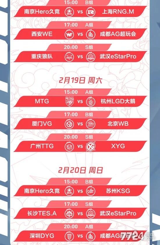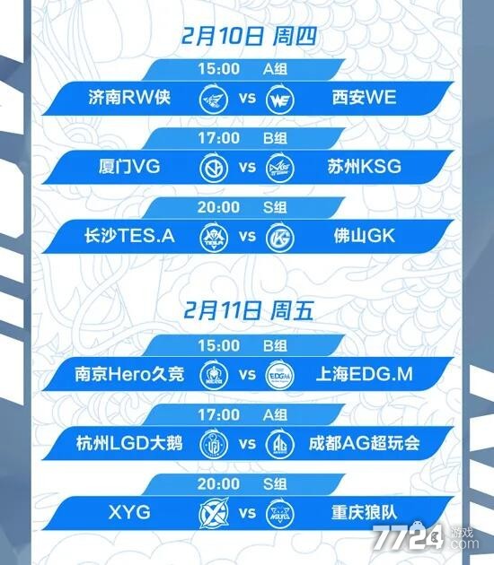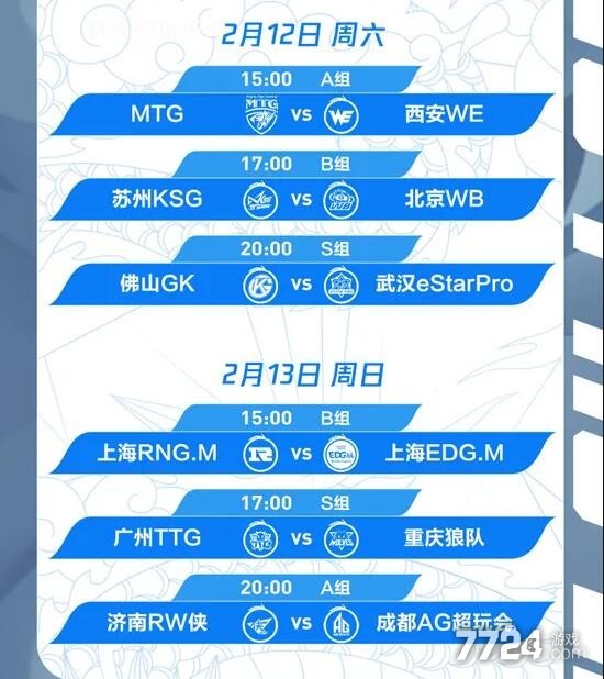 B组——上海EDG.M、南京Hero久竞、苏州KSG、上海RNG.M、厦门VG、北京WB