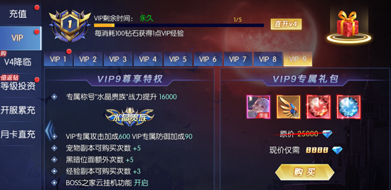VIP是可以进行充值的,有指定的价格表,可以从VIP1解锁到VIP15,可以提升大量的特权,游戏中的各种加成,各种特权都是可以解锁的。专门的解锁vip的等级,可以获得更多的贵族特权,还有vip的特权和福利,在这里的vip去激活,可以解锁专属的礼包,可以激活更多的高级礼包。