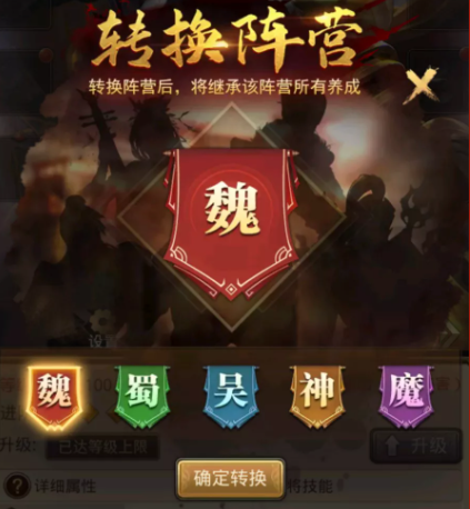 魂系武将可以任意切换【魏蜀吴神魔】阵营且只有选择【魏蜀吴神魔】的武将才可以上阵。